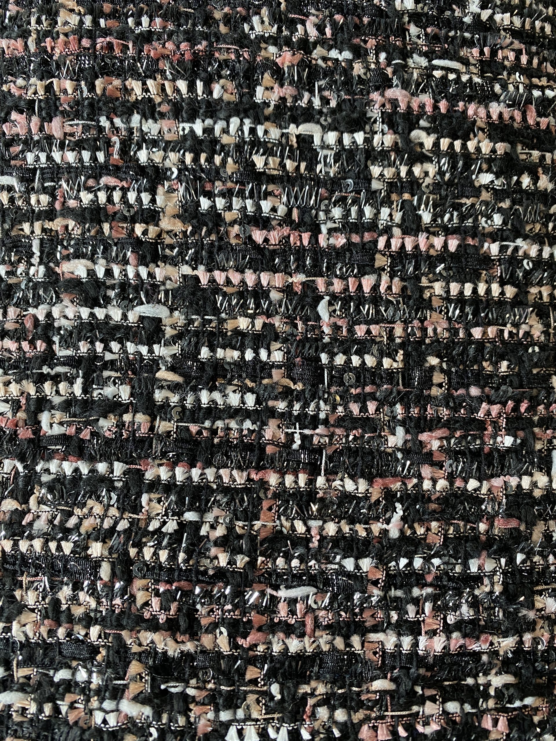 This beautiful Lesage type tweed fabric is a modern take on the Linton tweed used by Coco Chanel in the 1950s. The variety of yarn thickness, texture, and composition give this fabric its unique composition. This is a heavy weight fabric but its woven structure give it good drape and movement. it would be perfect for a jacket, skirt or coat.