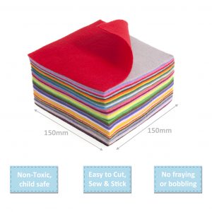This bumper pack of assorted colour felt is great value and ideal for small crafts, fun children’s projects, toy making and perfect for Christmas crafting and cardmaking.