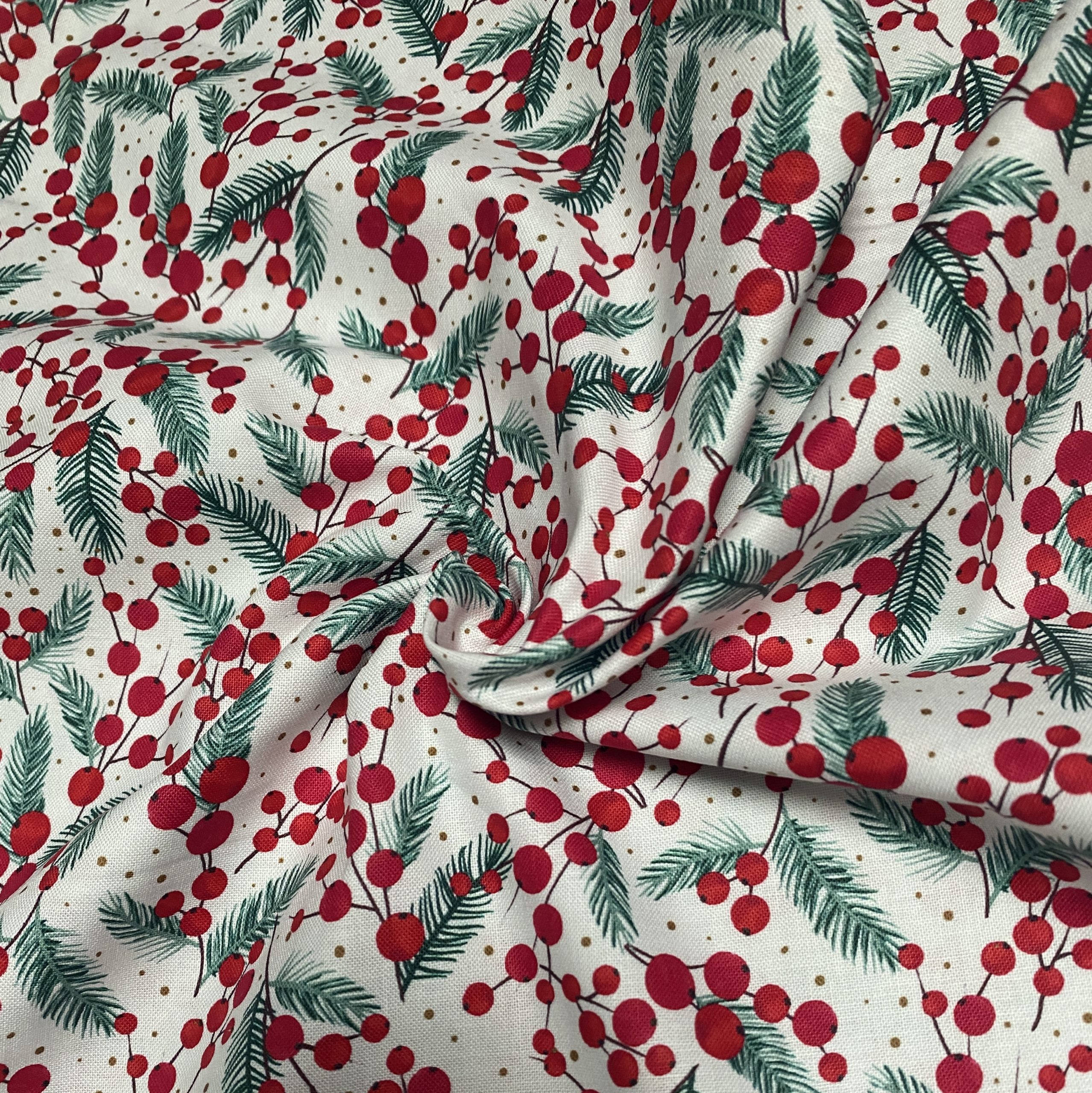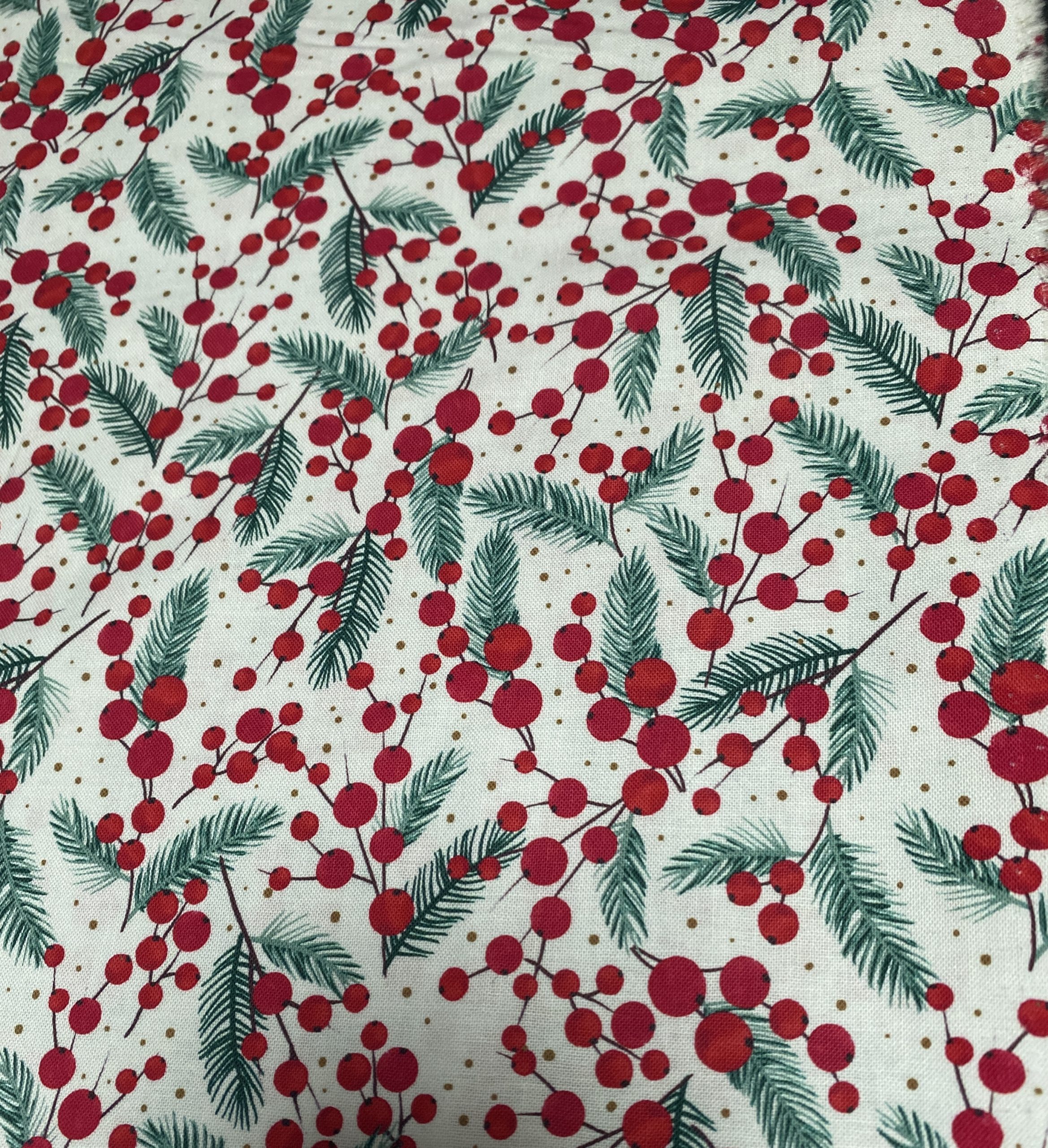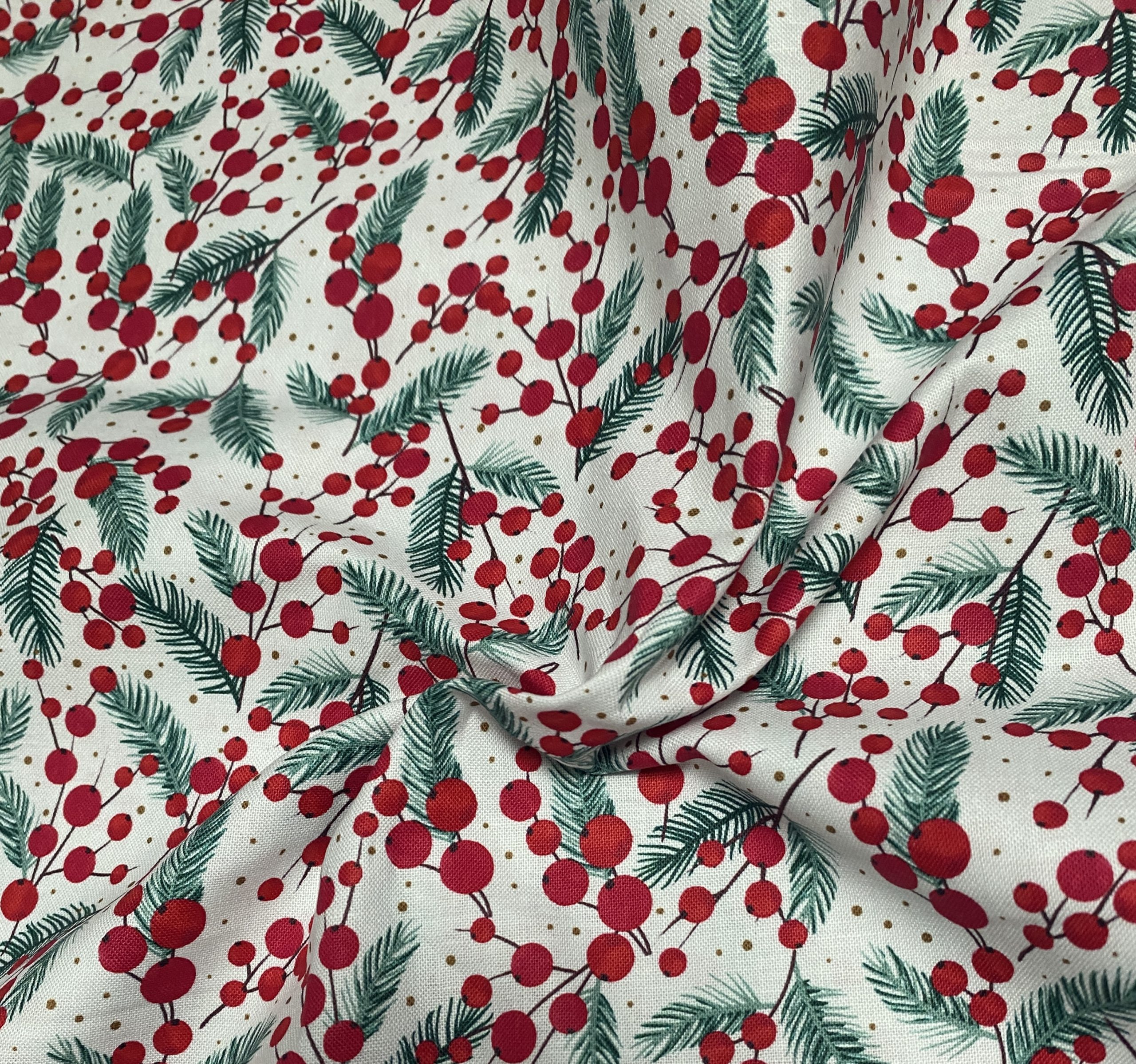 Medium weight cotton suitable for dressmaking, crafts and patchwork. This cotton has cute festive motif.