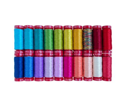 PALETTE I 5005 Bright Turquoise, 2783 Medium Delft Blue, 2810 Turquoise, 2725 Light Wedgewood, 4093 Jade, 2520 Violet, 1114 Grass Green, 2510 Light Lilac, 1147 Light Leaf Green, 2515 Light Orchid. PALETTE II 5015 Gold Yellow, 4020 Fuchsia, 2140 Orange Mustard, 2220 Light Salmon, 3817 Marrakesh, 2420 Light Blush, 2260 Red Wine, 2311 Muslin, 2270 Paprika, 5002 Medium Red.