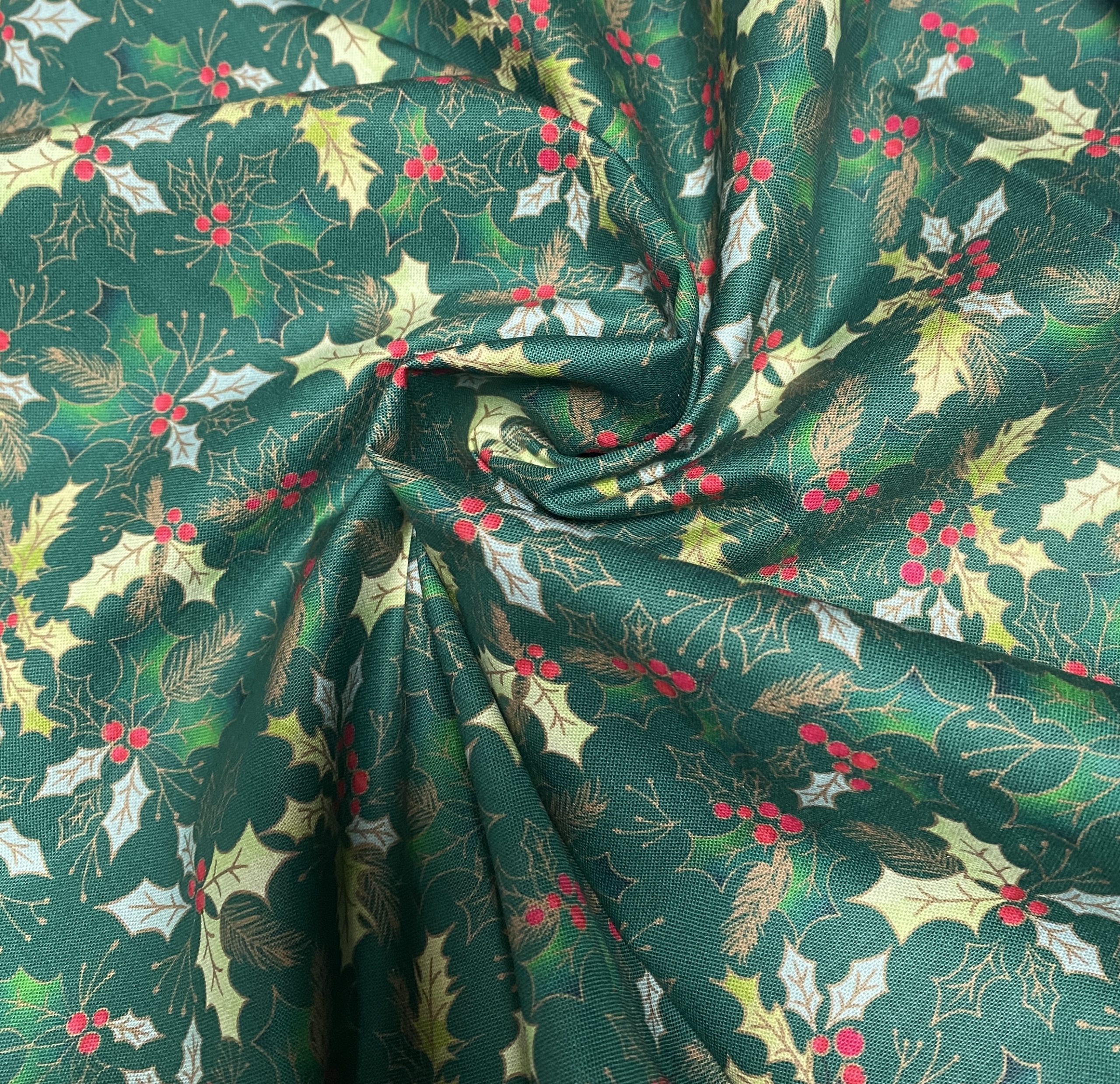 Medium weight cotton suitable for dressmaking, crafts and patchwork. This cotton has cute festive motif.