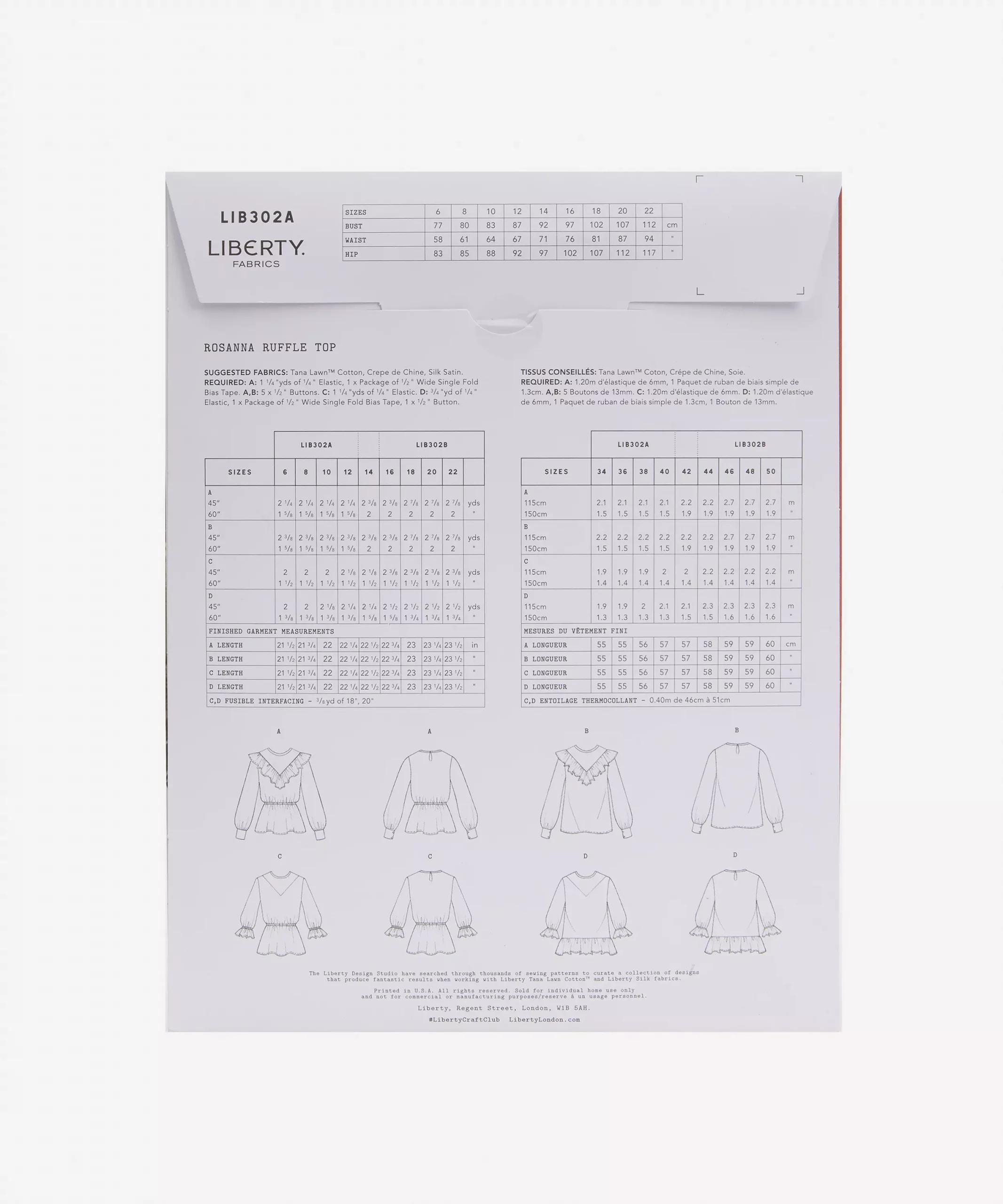 - Suggested fabric: Tana Lawnâ„¢ Cotton, Satin, Poplin