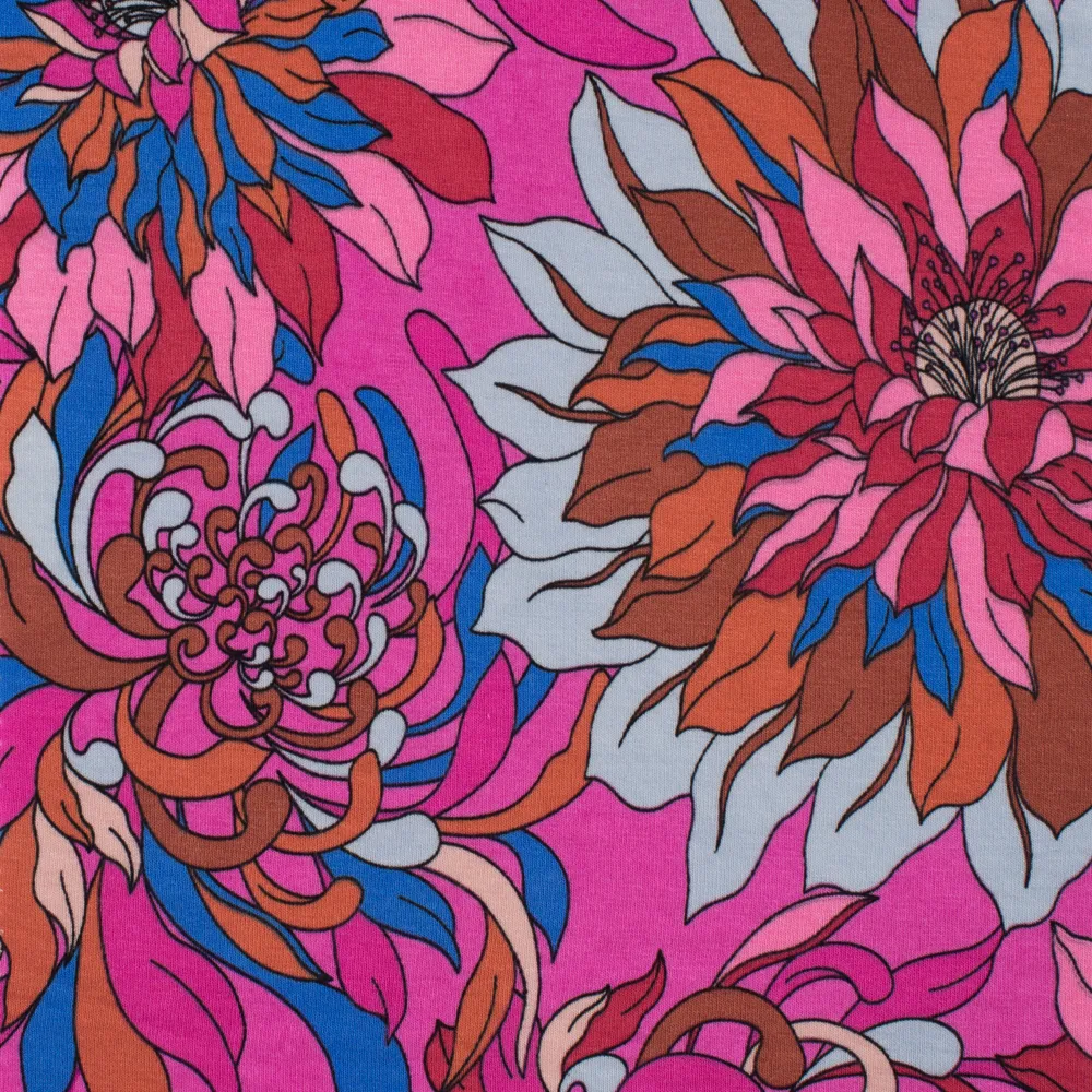 Viscose Jersey – Chrysanthemum Flowers Fuchia